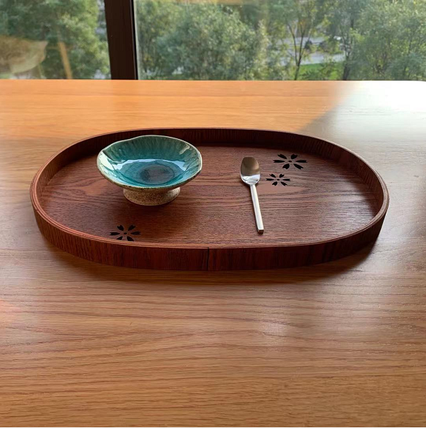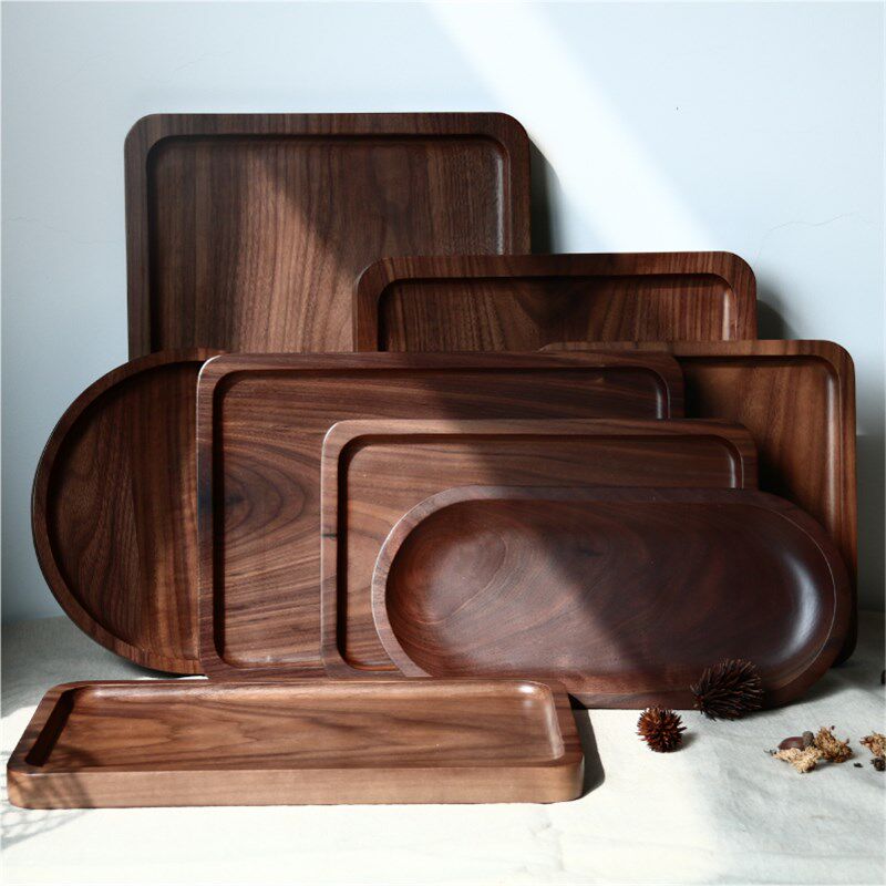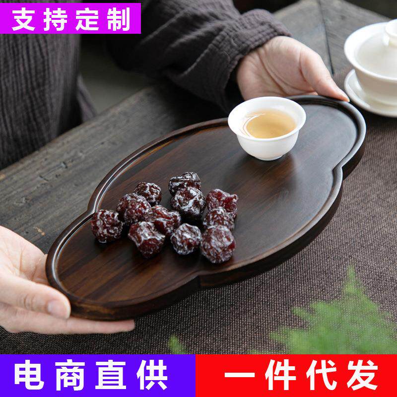 梵瀚 日式黑胡桃木托盘放置干泡茶盘家用餐盘点心面包盘子