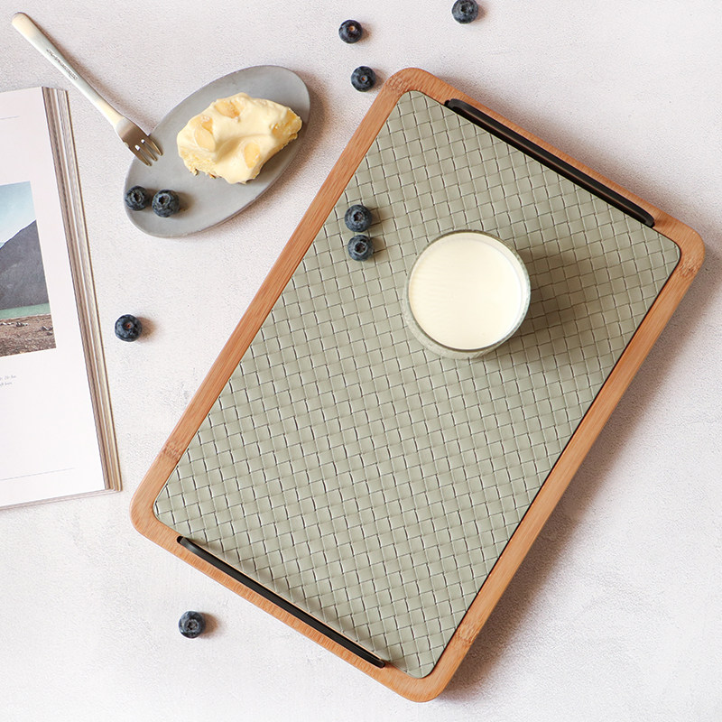 竹托盘家用长方形水果盘茶盘餐盘酒店餐馆烧烤面包木质托盘带提手