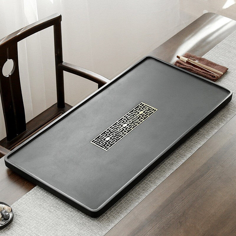无石设计乌金石茶盘石盘储水式轻奢现代茶具新中式小型干泡台茶台