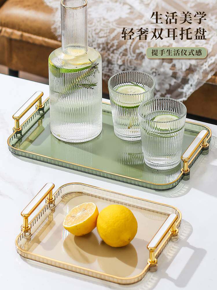 家用托盘茶盘餐盘轻奢风长方形放茶水杯子套装客厅创意塑料水果盘