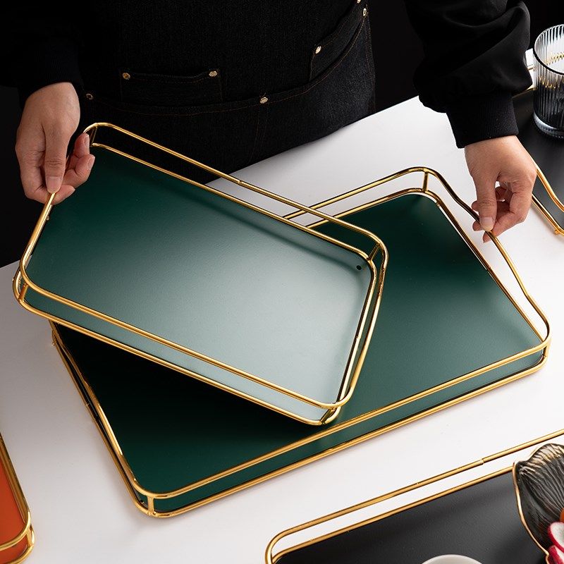 北欧不锈钢家用托盘放茶杯长方形客厅水杯收纳茶盘创意餐用托盘高