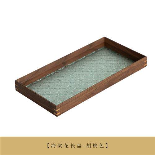2023复古中式实木海棠花玻璃托盘放水杯胡桃木色茶盘茶收纳高颜值
