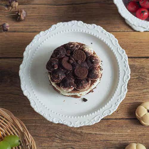 索厨法式复古浮雕陶瓷高脚托盘果盘点心盘蛋糕下午茶盘客餐厅摆件
