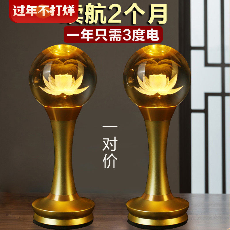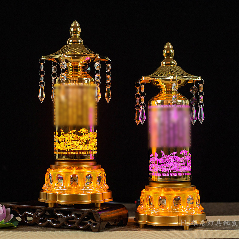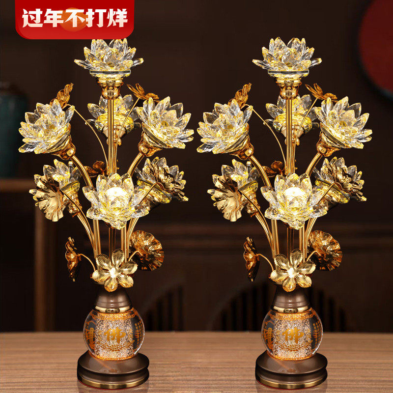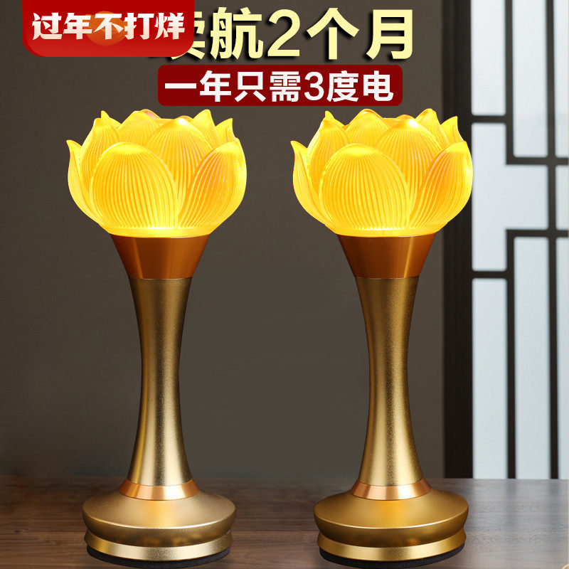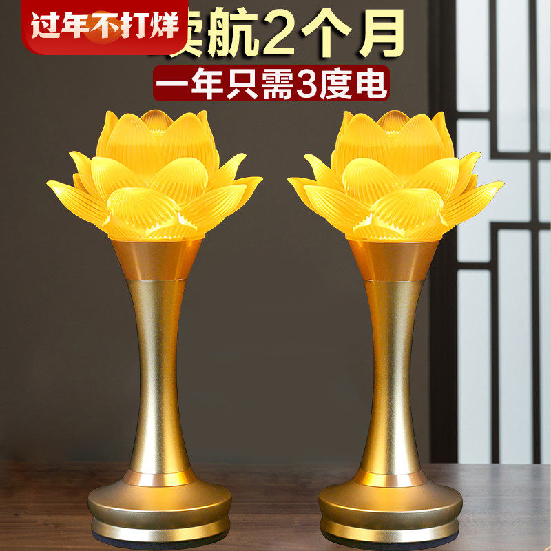 led琉璃佛前供灯新款莲花灯观音菩萨摆台佛龛长明灯家用插电一对