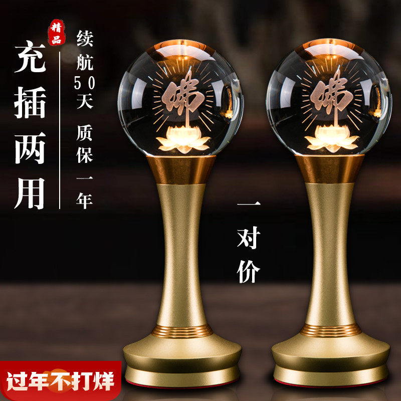 琉璃莲花灯佛供灯家用一对充电led佛灯佛前供灯插电神台灯长明灯