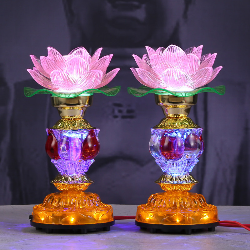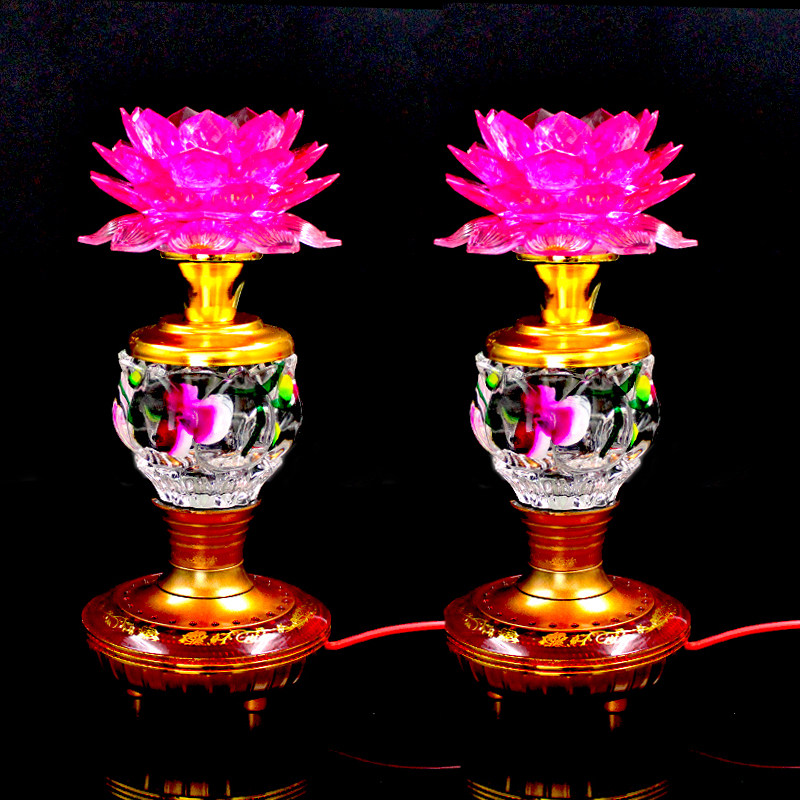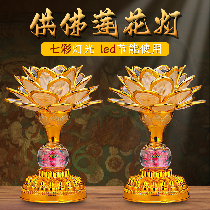 佛前供灯led七彩玻璃莲花灯家用神台关公财神观音荷花灯插电一对