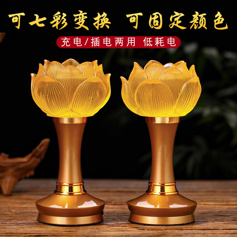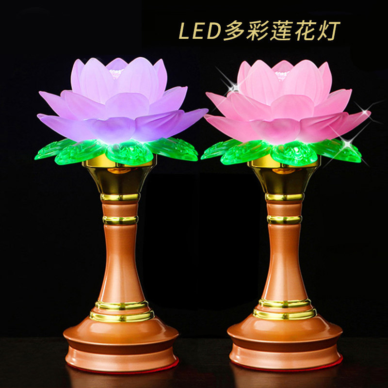 LED新款莲花灯菩萨插电充电七彩佛前供灯家用荷花灯长明灯佛堂