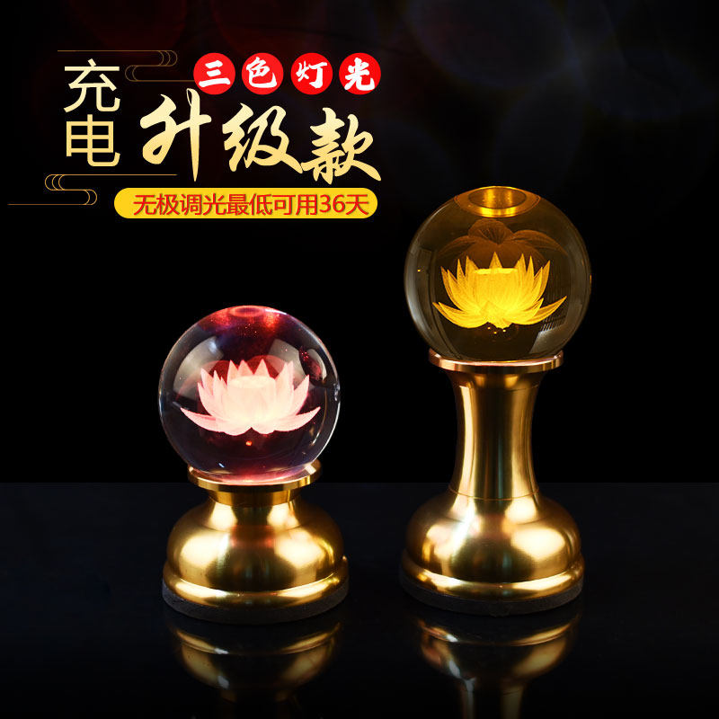佛前莲花灯佛供灯激光内雕水晶七彩变色合金供灯财神充电佛台插电