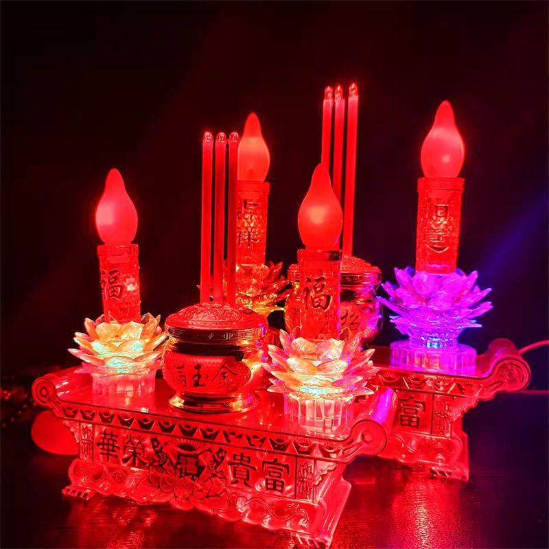 led七彩变色莲花电香炉无烟蜡烛灯财神家用供佛插电长明灯招财
