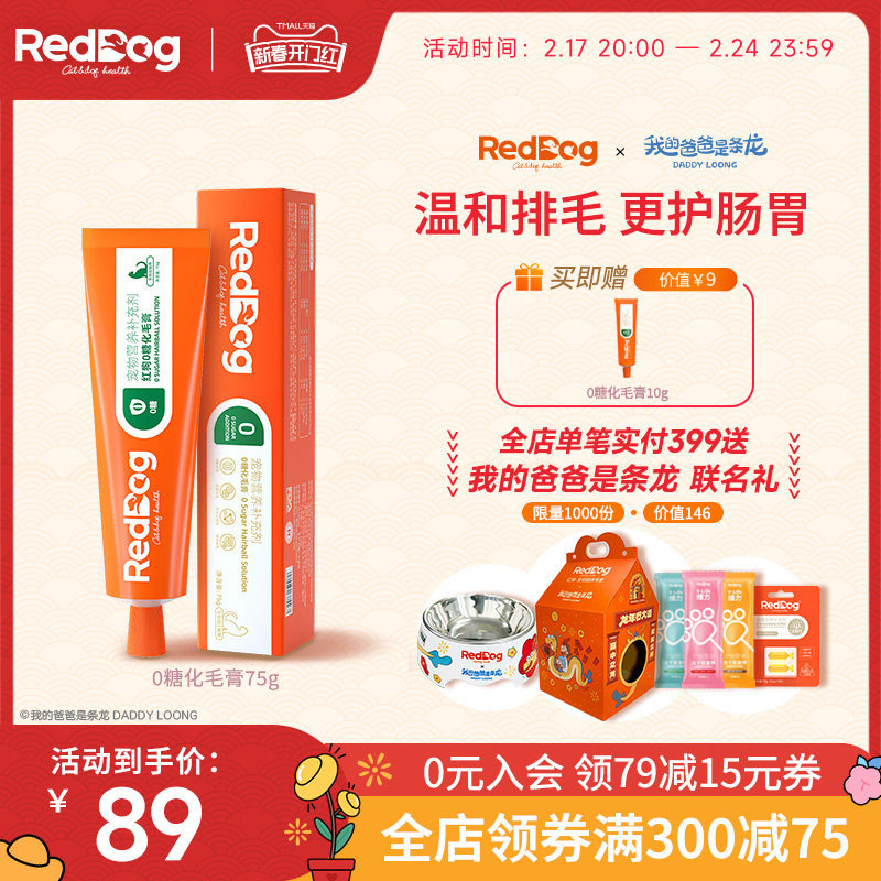 红狗化毛膏营养膏猫咪专用品成幼犬猫去毛球宠物化毛120g美毛补钙