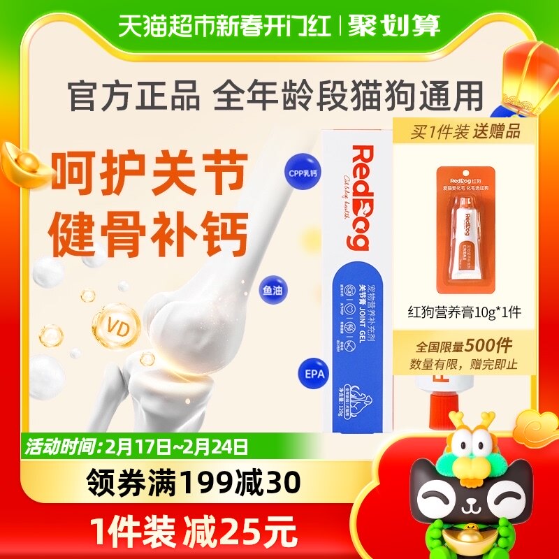 RedDog红狗宠物关节膏120g猫咪狗狗补钙健骨鲨鱼软骨素营养膏钙片