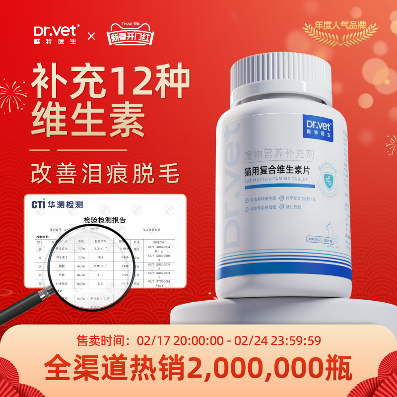 唯特医生猫用复合维生素宠物营养补充剂猫多维狗狗美毛维b营养膏