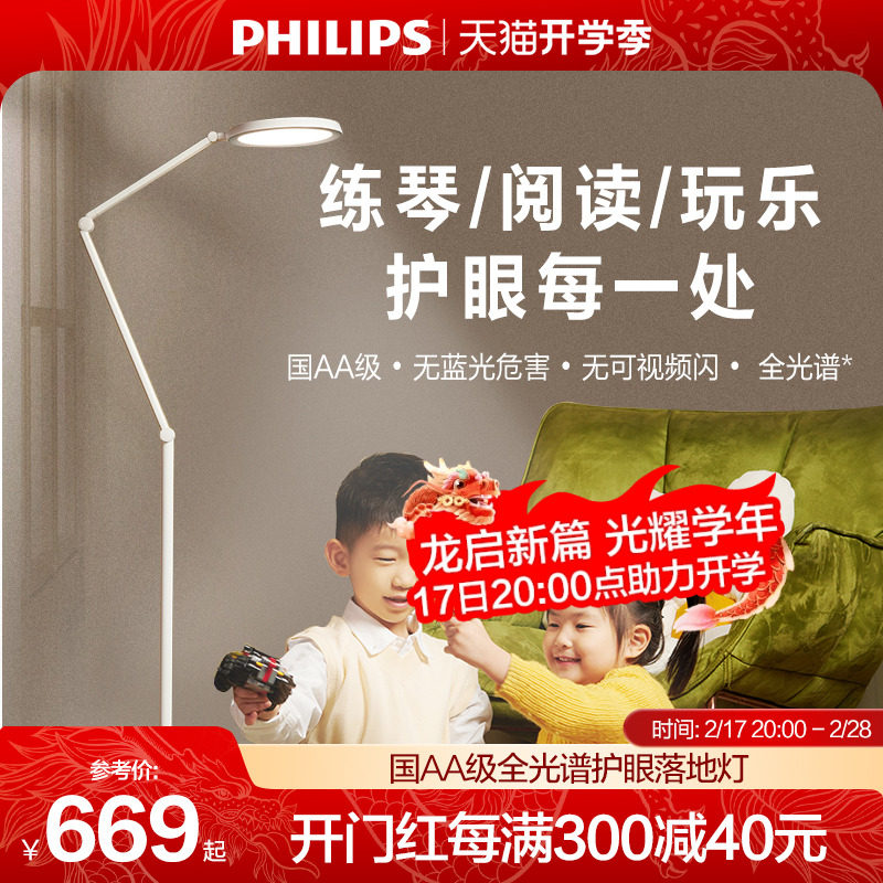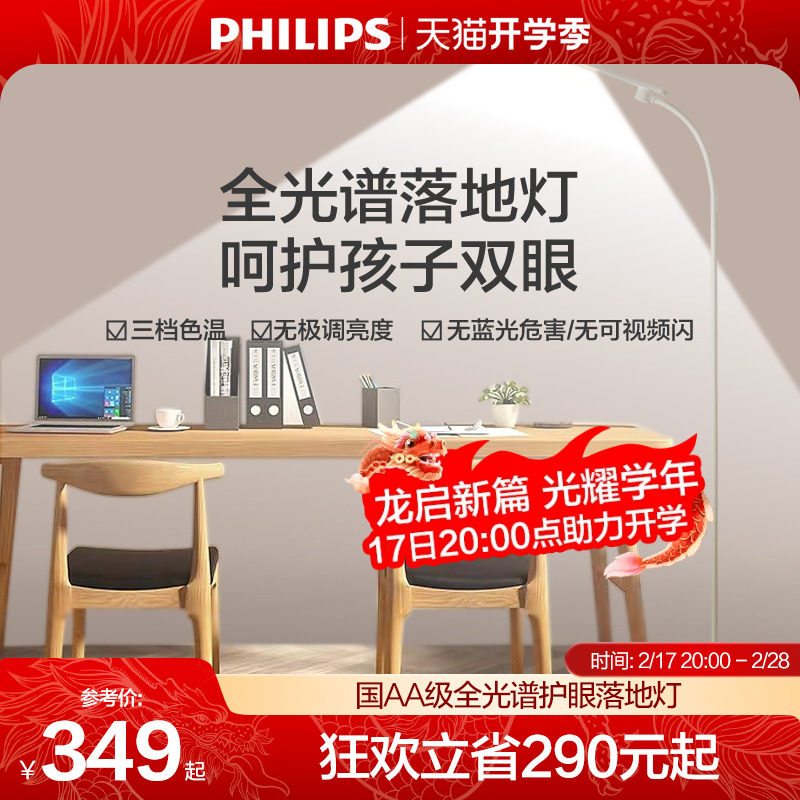 飞利浦F1护眼落地灯儿童阅读舒服床头客厅卧室国AA级led近视防控