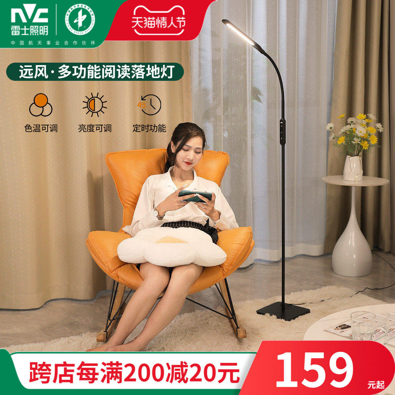 享域 落地灯LED护眼轻奢北欧ins风客厅卧室书房钓鱼立式台灯插电