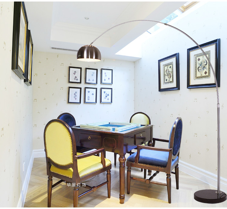 客厅落地灯打麻将室专用灯卧室书房灯创意简约麻雀阅读不锈钢钓鱼