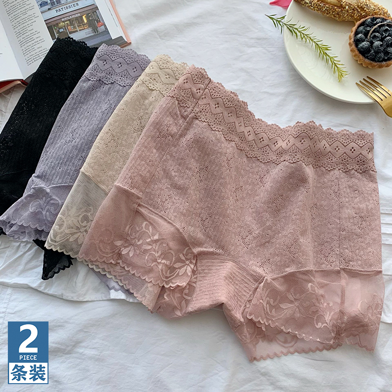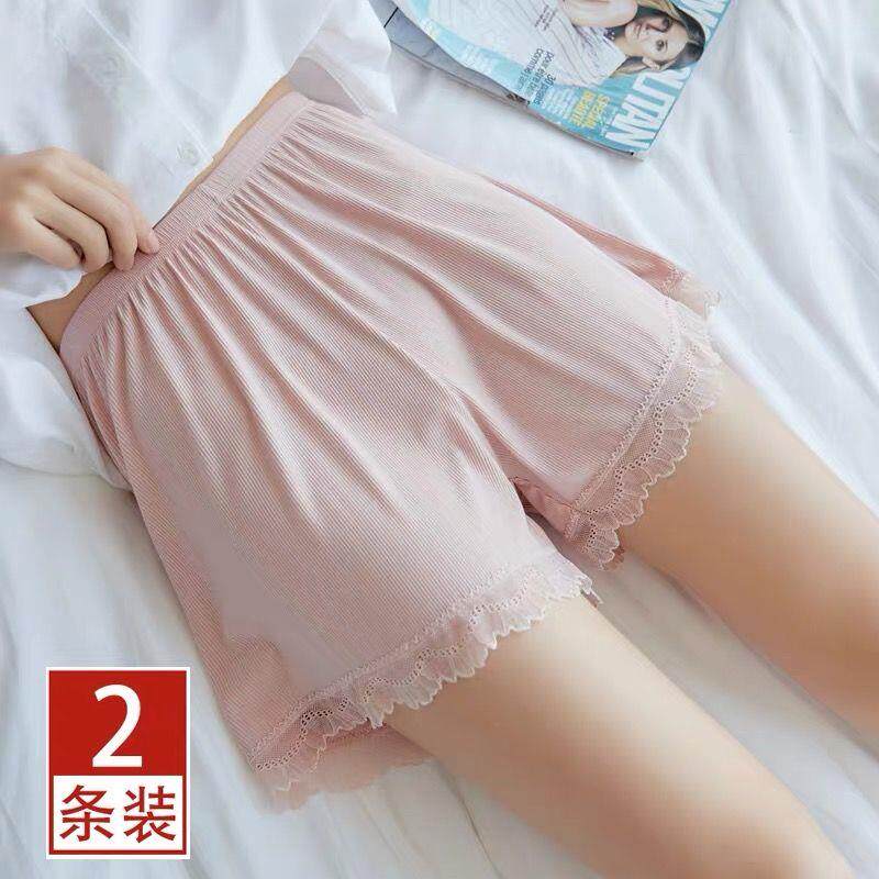 2条装 莫代尔夏季防走光打底三分安全裤保险少女士蕾丝花边平角裤