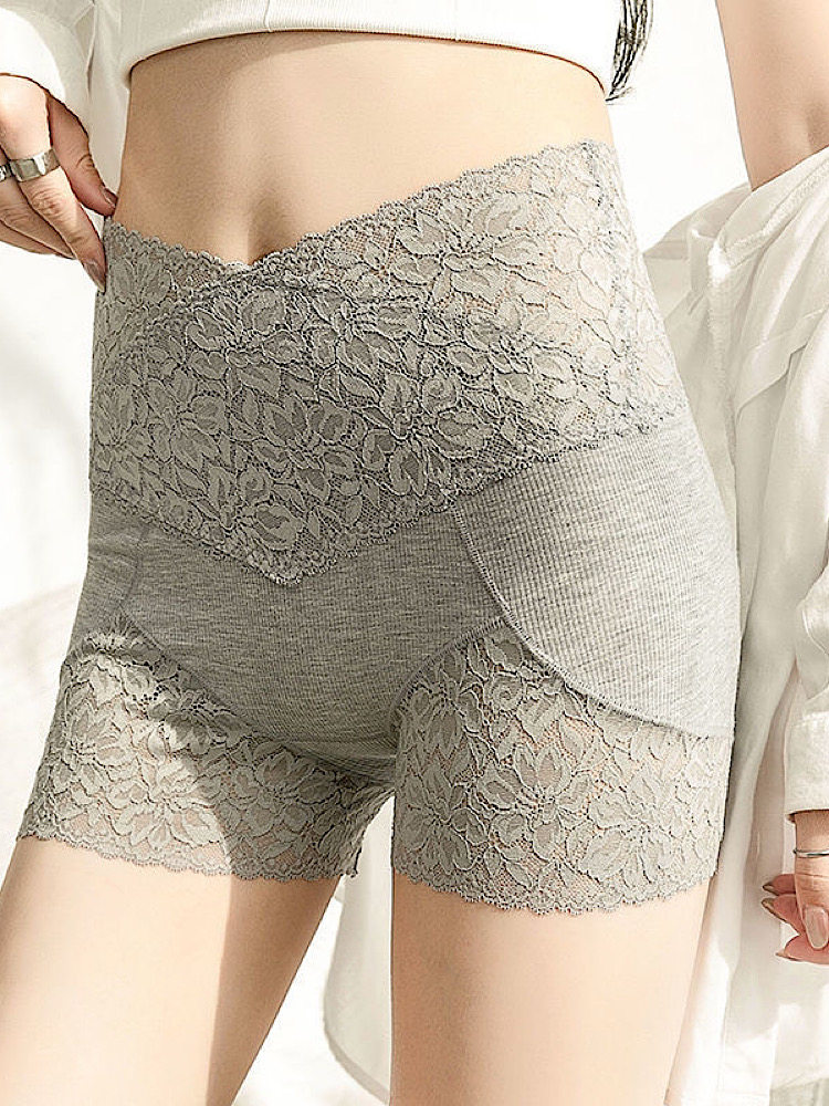 高腰收腹打底裤女外穿薄款安全裤夏防走光蕾丝短裤提臀塑形保险裤