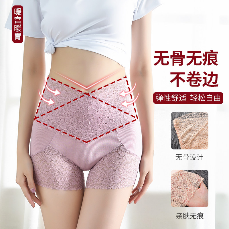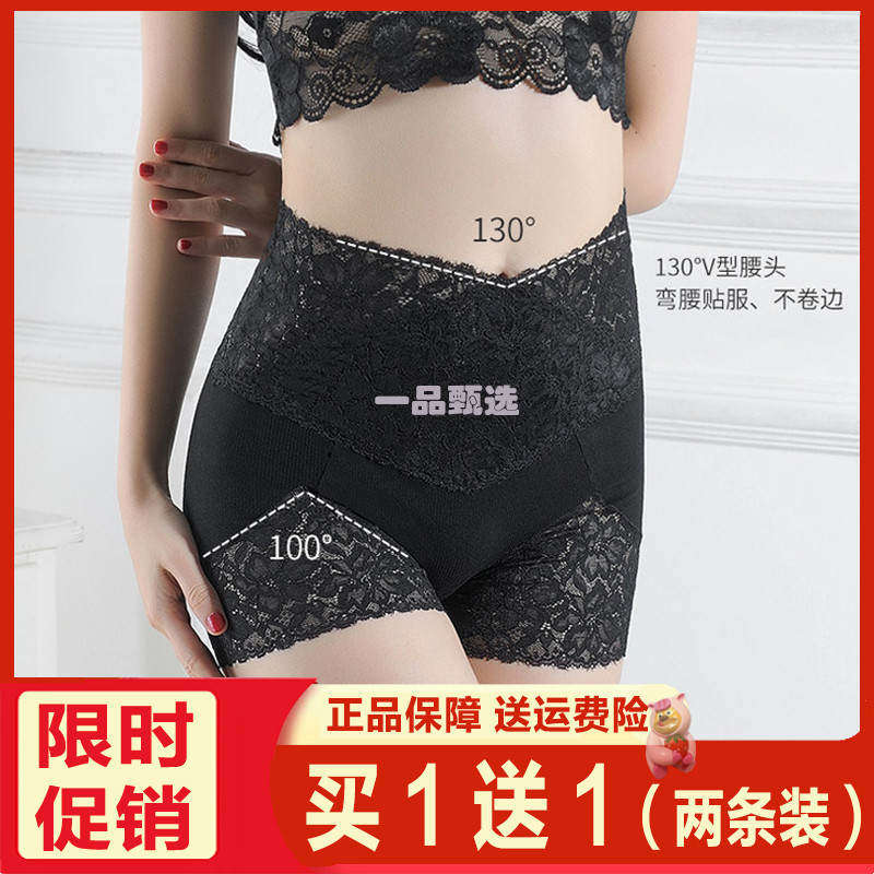 高腰收腹蕾丝安全裤防走光无痕平角内裤打底裤女提臀不卷边薄裸穿