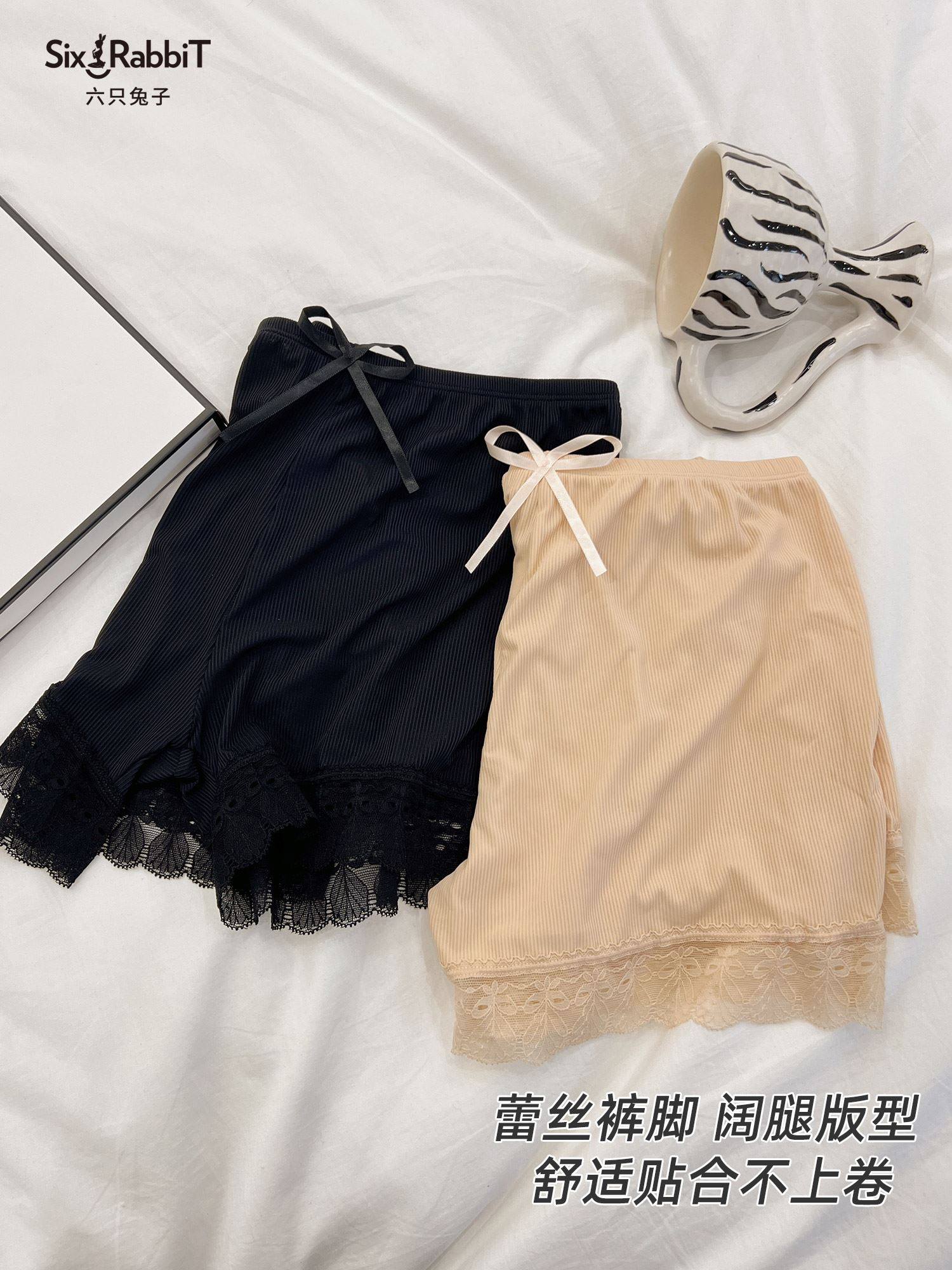 六只兔子安全裤薄款修身舒适蕾丝短裤无痕打底防走光高腰内裤女