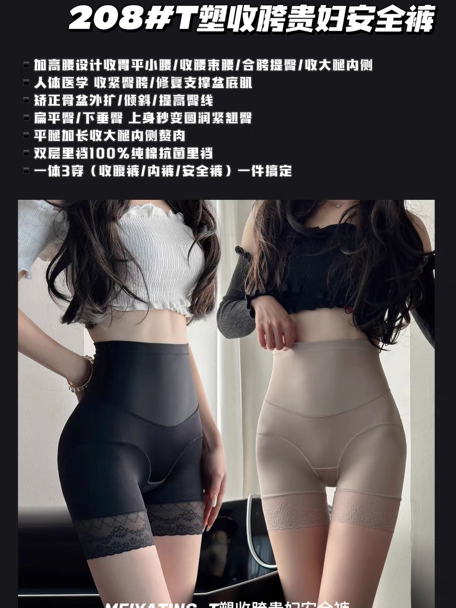 轻奢性感贴身女士内裤女夏季薄款蕾丝安全裤高腰收腹二合一抑菌裆
