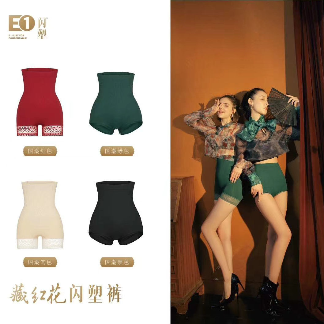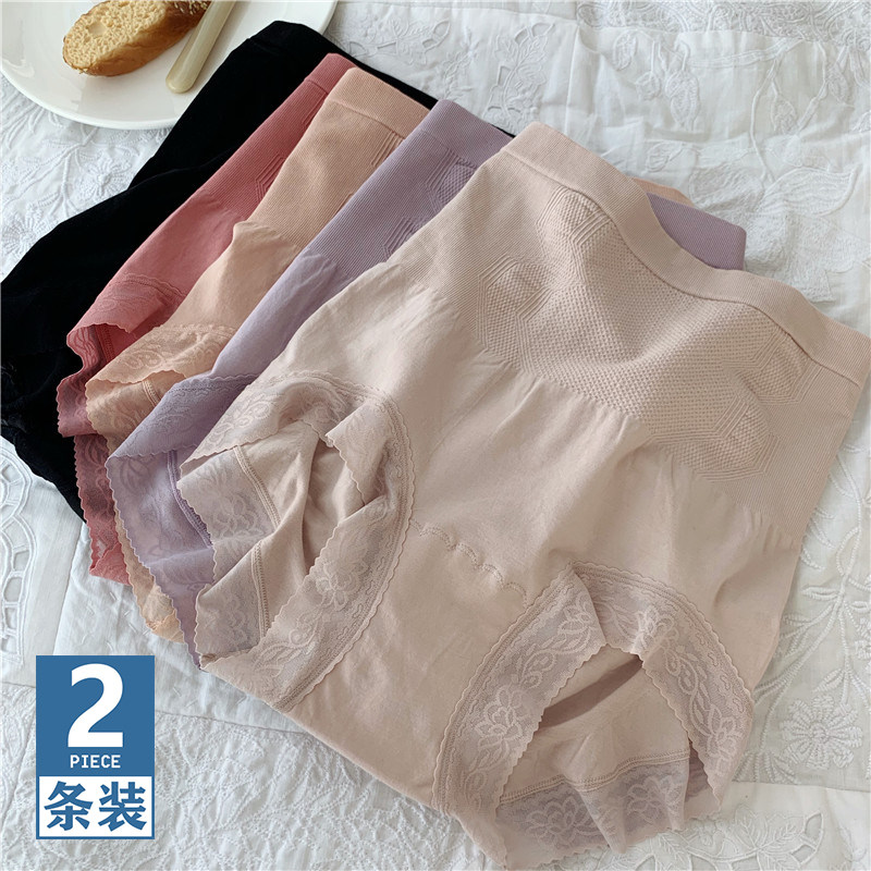 女内裤蕾丝藏红花闪塑裤高腰收腹提臀平角三角裤边束裤安全裤