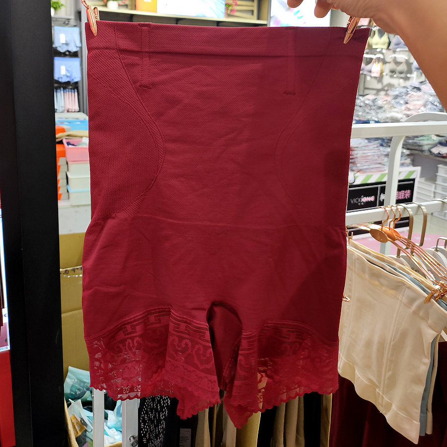 藏红花闪塑裤女高腰收腹提臀蕾丝平角三角裤蕾丝边塑身束裤安全裤