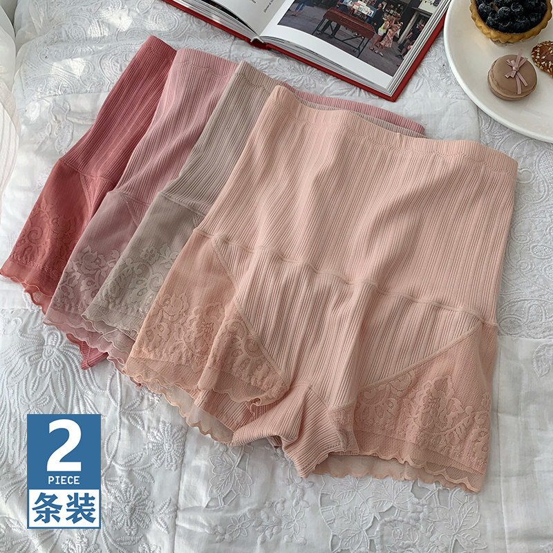 2条装蕾丝边内裤安全裤二合一女夏季无痕四角短裤收腹提臀平角裤