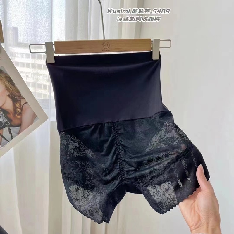 高腰收腹安全裤冰丝无痕女夏季超薄丝滑收小肚子打底短裤高弹蕾丝