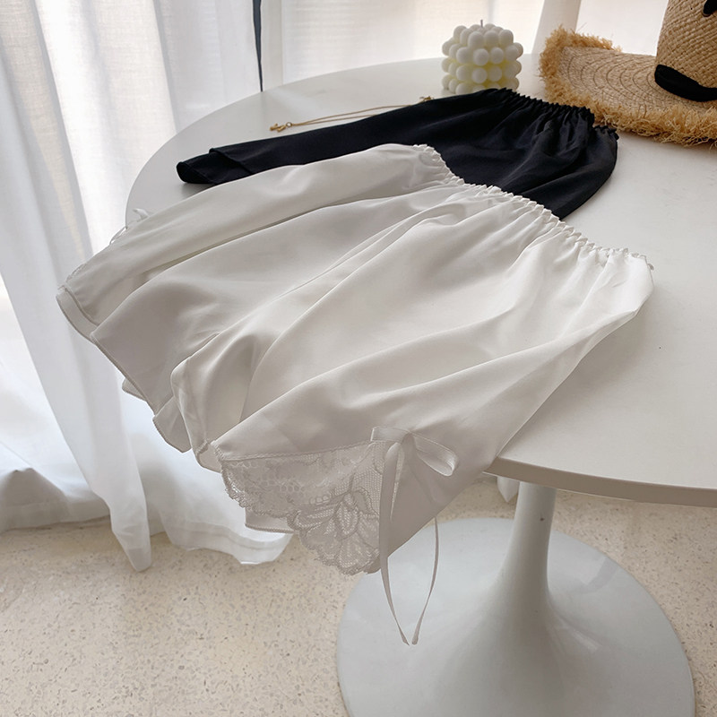 A7seven夏季直筒宽松短裤女百搭不卷边薄款缎面蕾丝边安全打底裤