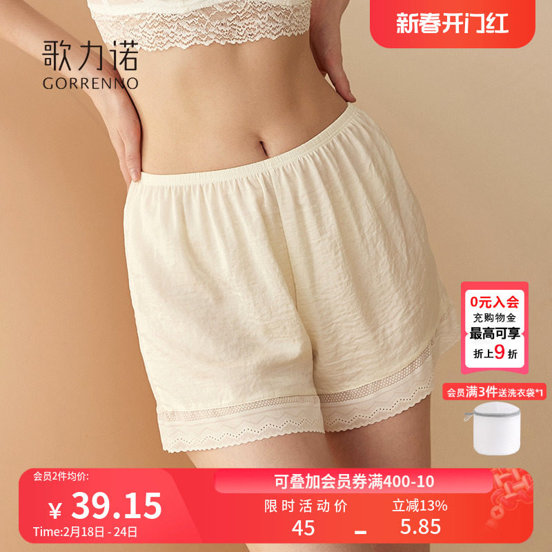 正品朵女郎蕾丝安全裤防走光女高腰保险短内裤无痕透气速干银纤维