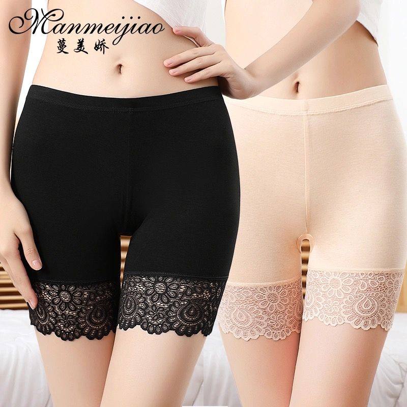 特大码5分打底裤防走光三分安全裤蕾丝女春夏薄款全棉平角不卷边