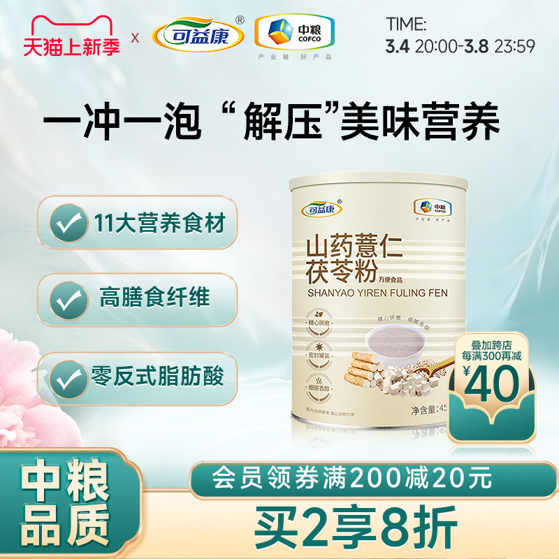 中粮山药粉八珍薏仁茯苓芡实粉猴头菇胃代餐饱腹食品早餐冲饮薏米