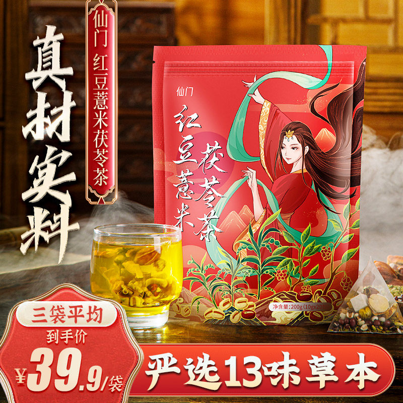 茯苓薏湿茶红豆薏米祛湿茶旗舰店养生去湿气重排毒排体内湿寒除湿
