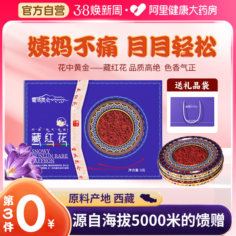 雪域方品 西藏藏红花3g装一级伊朗特产男女泡水喝泡炖煮都可以