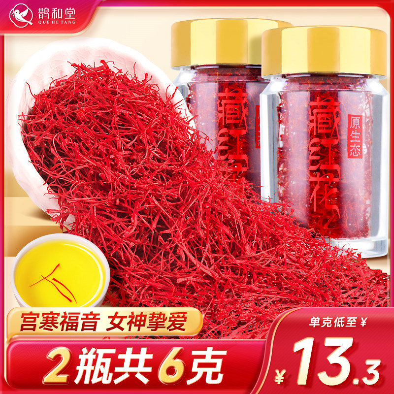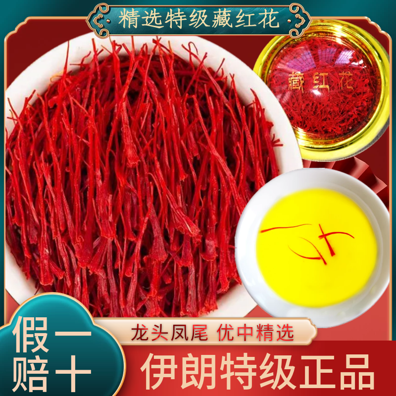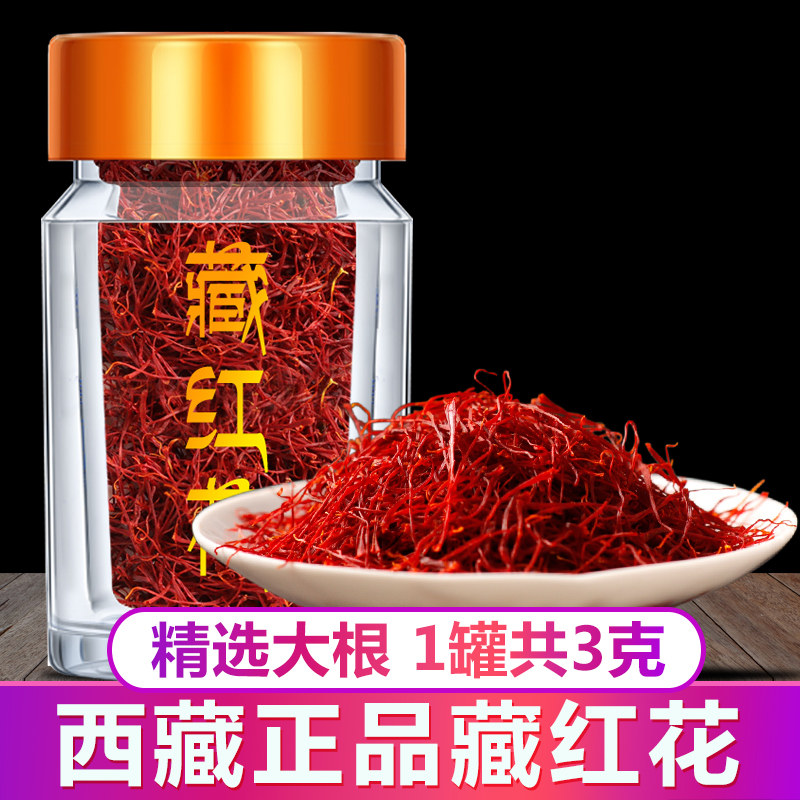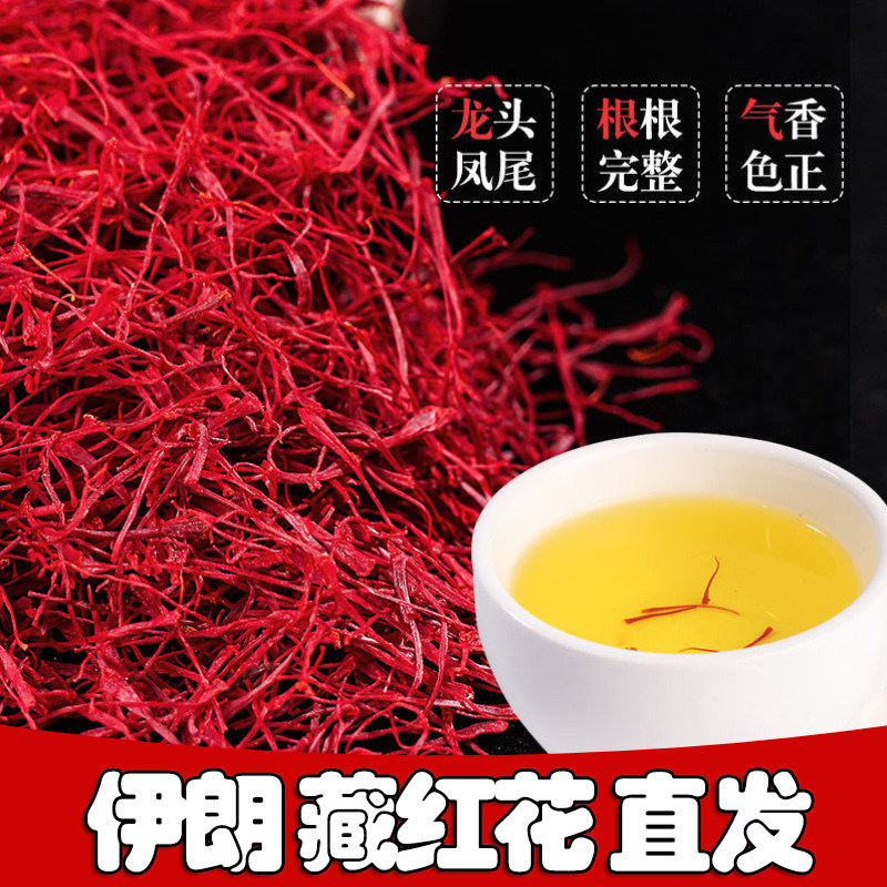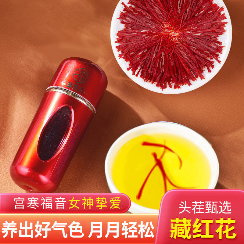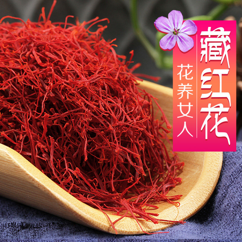 藏红花正品特级西藏官方旗舰店臧红花伊朗中药材泡水喝的功效红花
