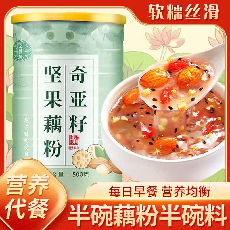 藕粉坚果羹纯莲藕正品官方旗舰店奇亚籽罐装早餐即食年货送礼长辈
