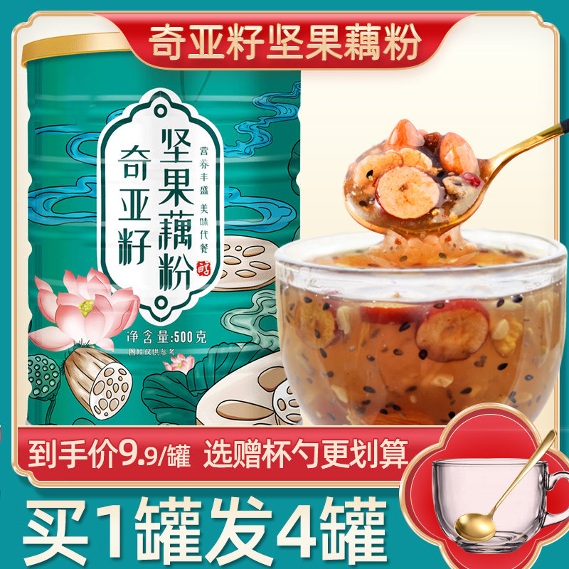 藕粉坚果羹奇亚籽官方旗舰店正品纯罐装莲藕粉巴旦木早餐食品