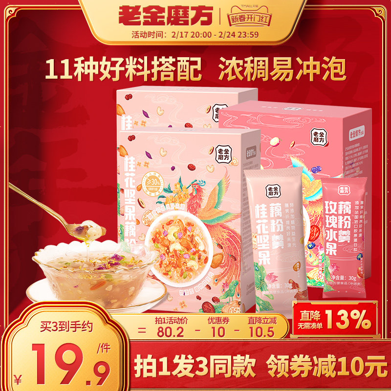 [官方自营]秦老太红枣银耳羹女人花莲藕粉0脂早餐速溶代餐小袋装