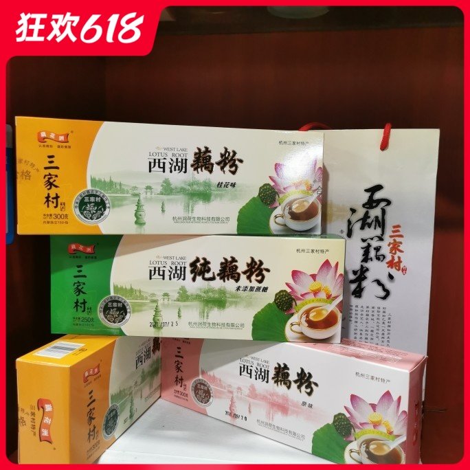 杭州西湖藕粉三家村特产藕花洲冲泡纯藕粉3个囗味任选4盒礼盒包邮