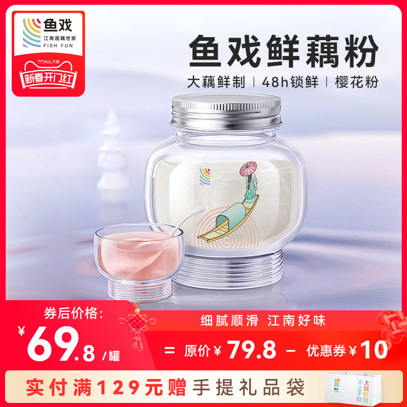 鱼戏鲜藕粉纯藕粉正品官方杭州西湖藕粉孕产妇养胃代餐代餐纯藕粉