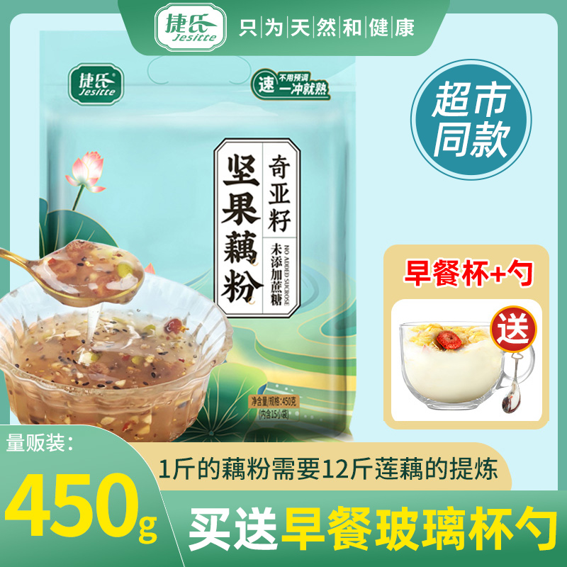 捷氏天然纯味藕粉600g羹即食冲饮营养早餐袋装代餐饮品无蔗糖添加