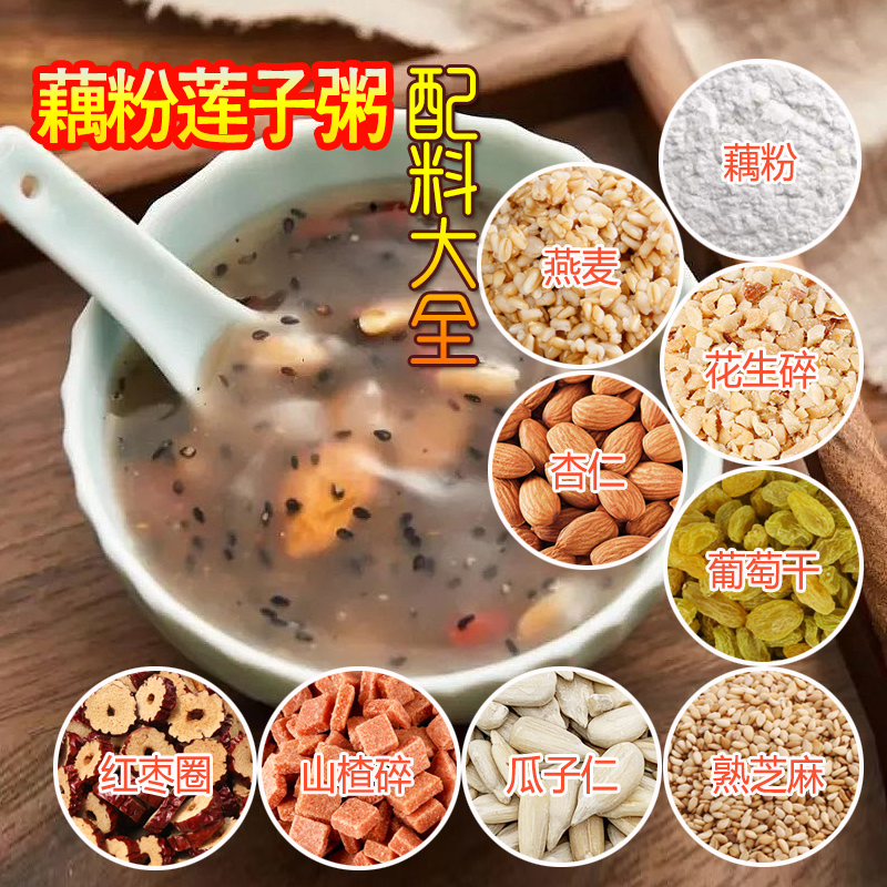 纯藕粉商用莲子粥搭档杏仁茶专用配料组合包坚果藕粉羹原料伴侣