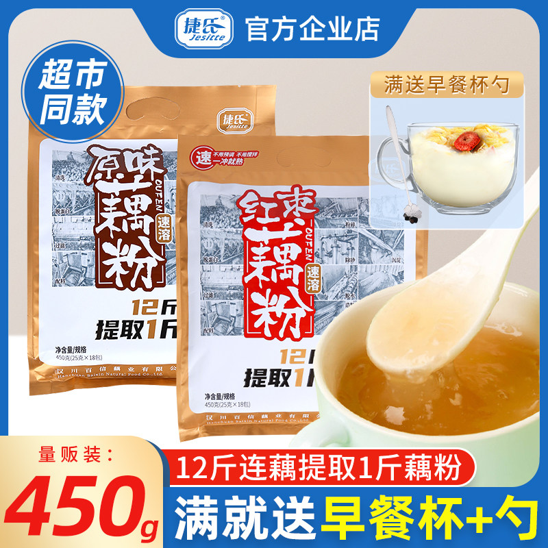 【官方企业店】捷氏藕粉速溶红枣原味藕粉450g纯藕粉冲饮早餐营养