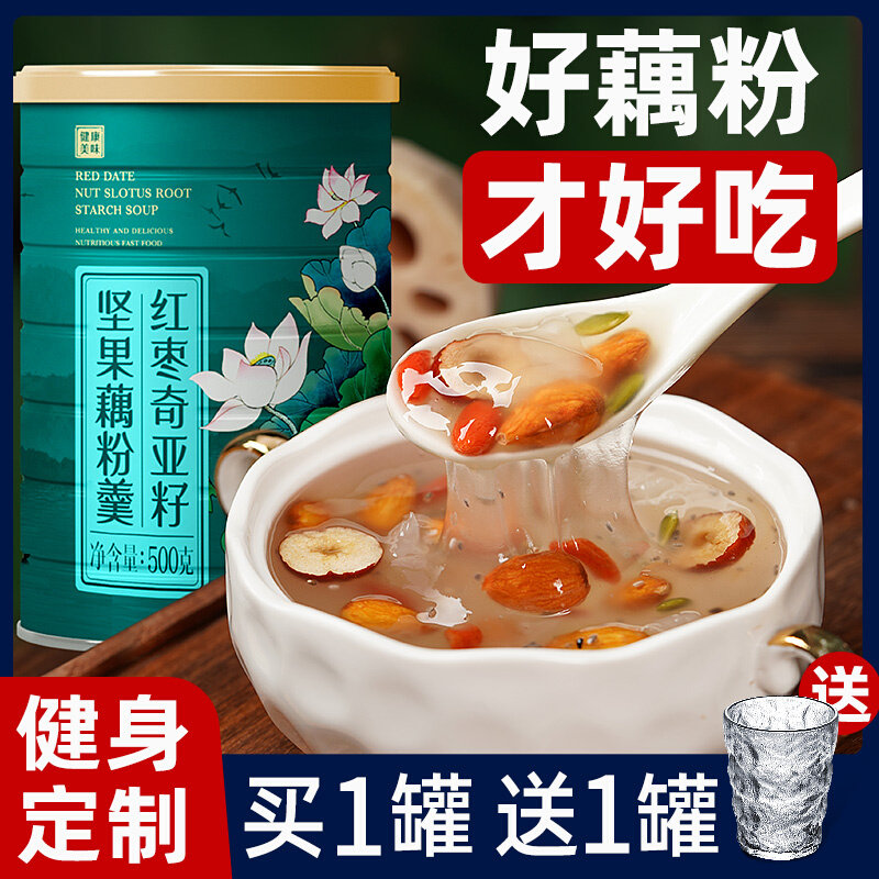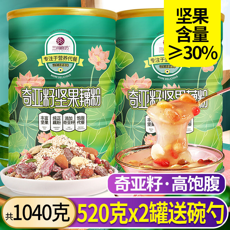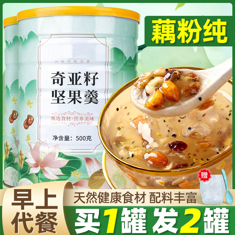 藕粉坚果羹纯莲藕粉奇亚籽罐装代餐早餐无糖精即食官方旗舰店正品