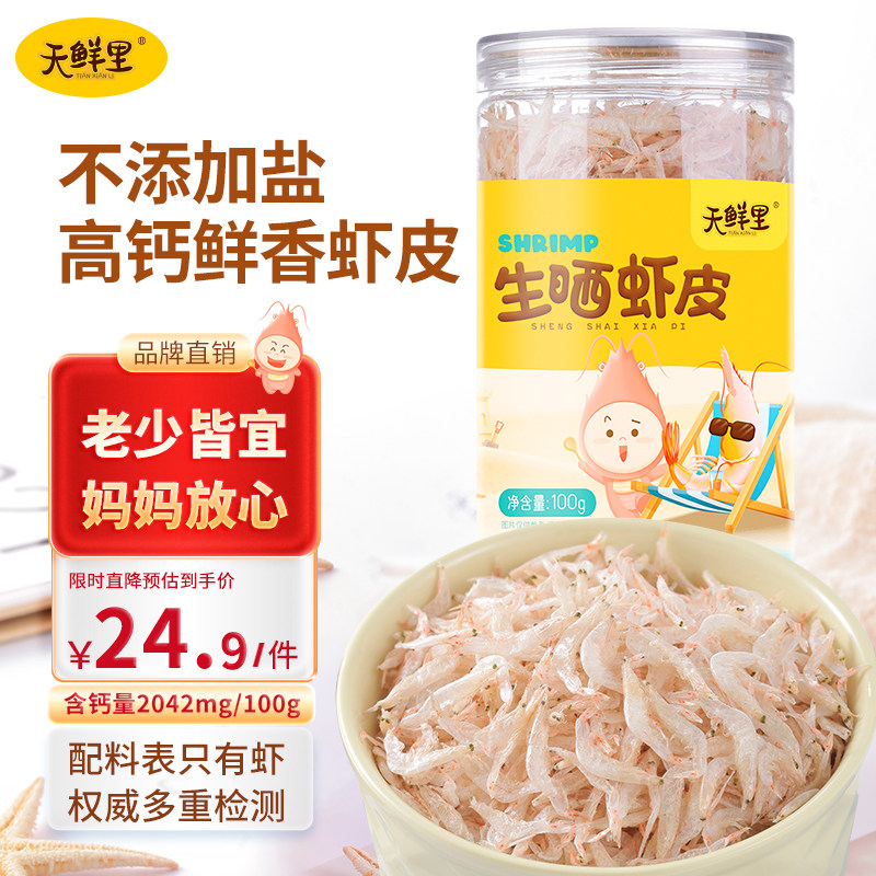 天鲜里生晒虾皮干货新鲜淡干无添加盐可即食非特级虾米官方旗舰店
