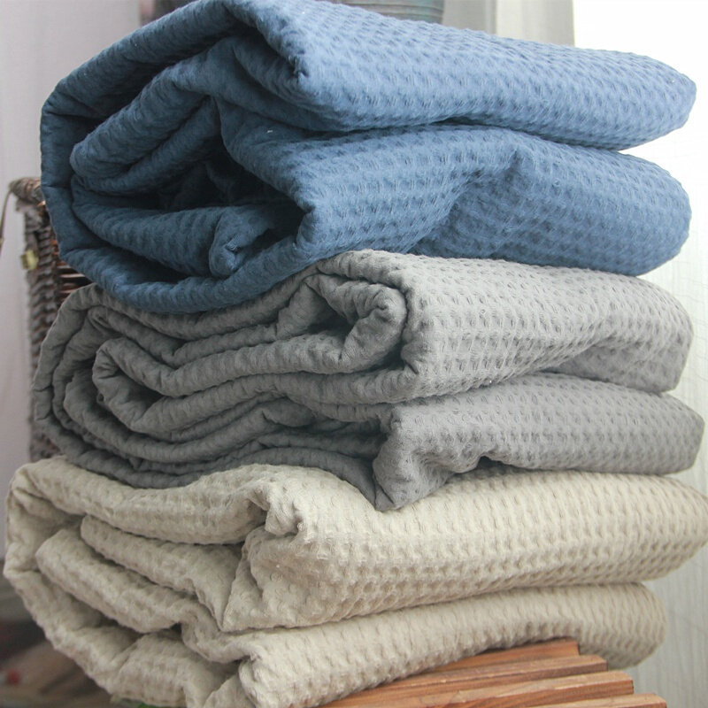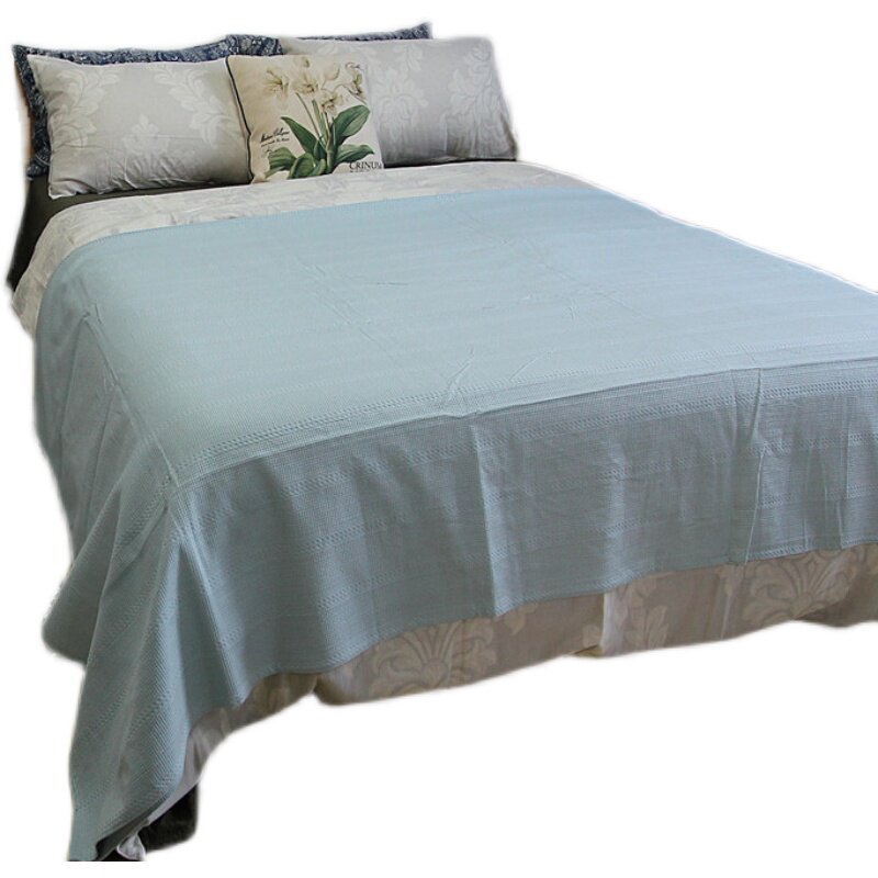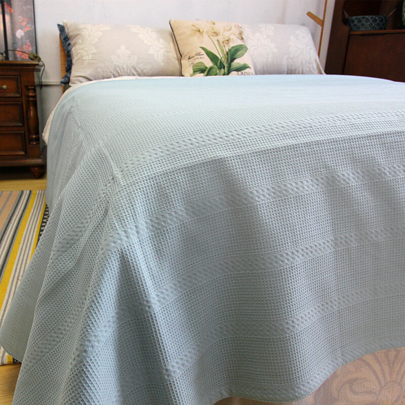 韩式素色纯棉编织蜂巢床盖氧气被床单全棉夏凉被透气空调被直边