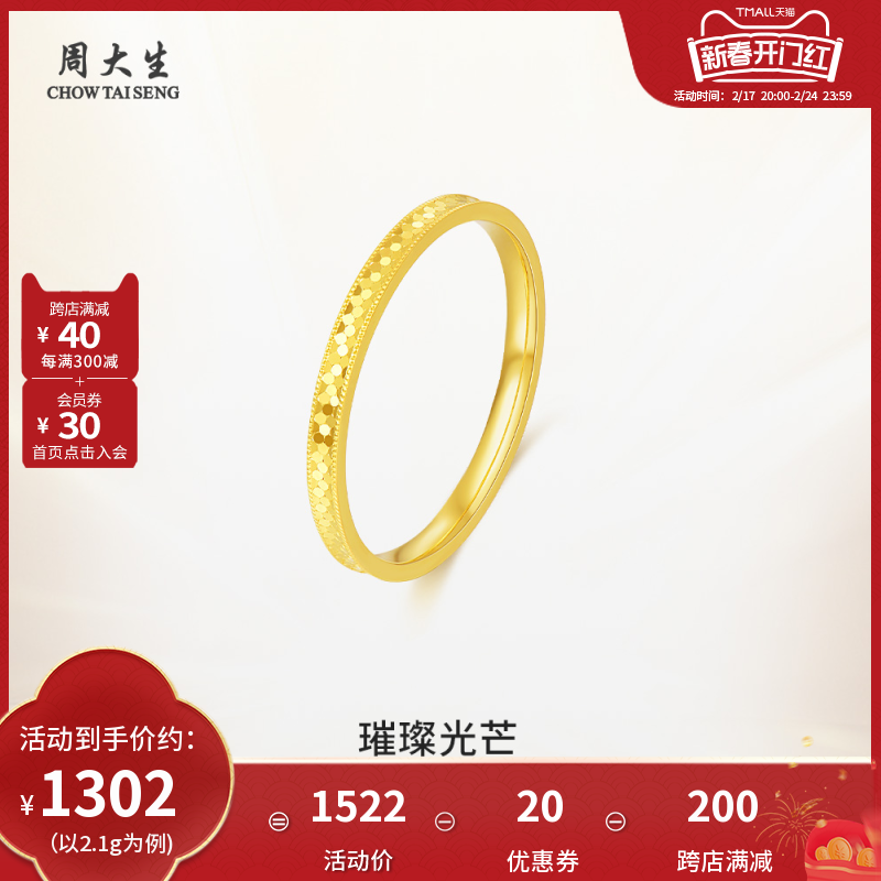 周大生黄金戒指足金指环女固口素圈5G蜂巢送闺蜜三八妇女节礼物