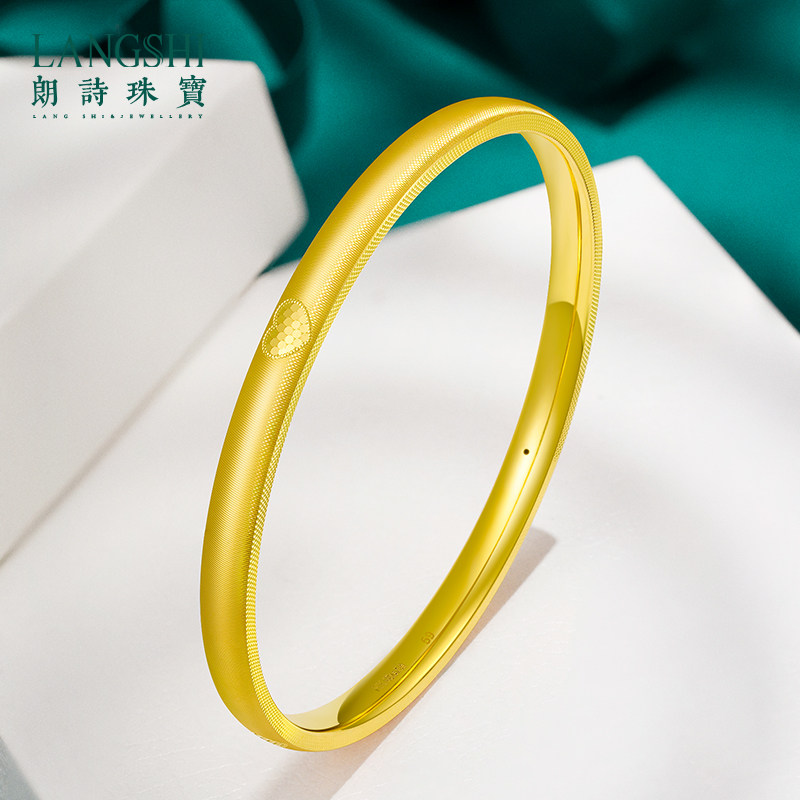 朗诗黄金手镯蜂巢亮面爱心拉丝素圈金镯子足金正品传承送女友礼物