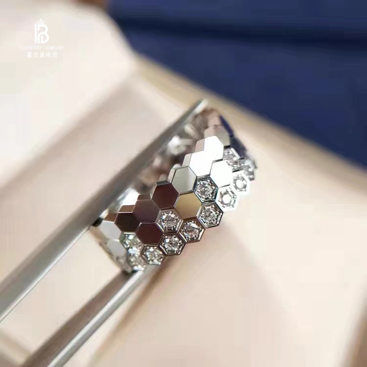 18k金蜂巢戒指女小众玫瑰金蜂窝素圈莫桑排钻叠戴时尚个性食指戒