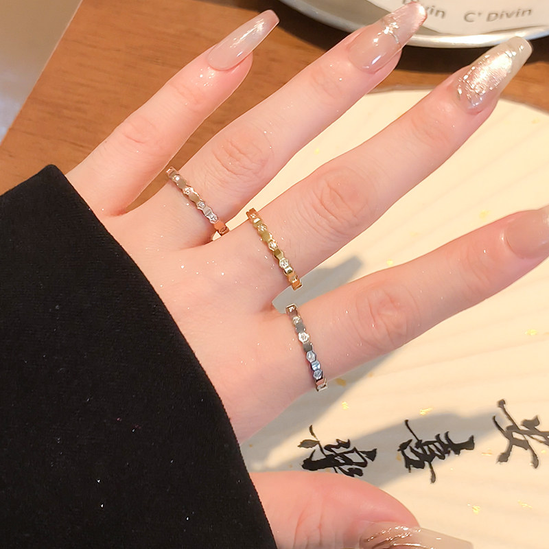 蜂巢钛钢戒指女小众设计高级感素圈戒指女时尚个性锆石尾戒食指环
